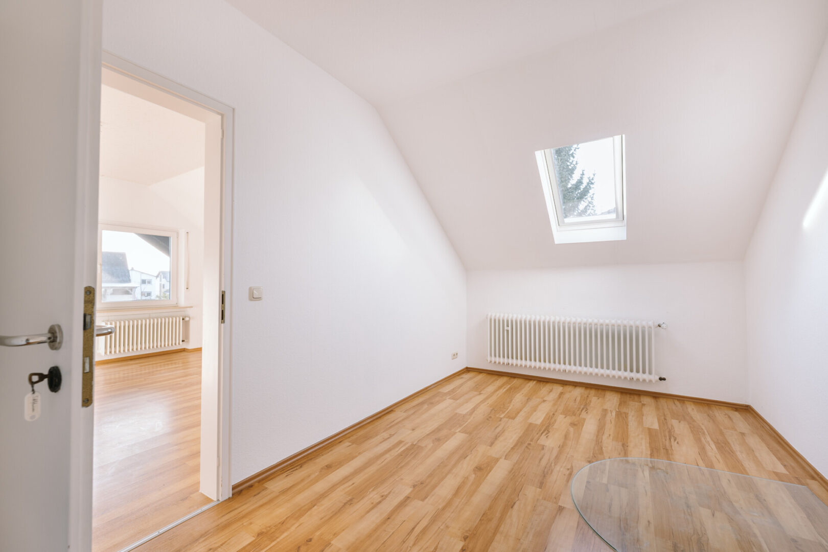 Das Dachgeschoss verfügt über drei weitere Schlafzimmer sowie ein zusätzliches Badezimmer. Eines der Schlafzimmer ist mit einer separaten Ankleide ausgestattet, zwei weitere Räume bieten direkten Zugang zum Balkon.